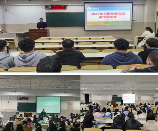 为更好帮助新葡萄官网AMG2021级本科学生提高专四备考效率,营造比拼赶超的学习氛围。3月16日下午,学院在12教101、102、104室分别举办了英语、商务英语和日语专业四级经验交流会。各系部主任、副主任、相关专业老师、辅导员、优秀学生代表以及2021级全体本科生参与本次动员大会。