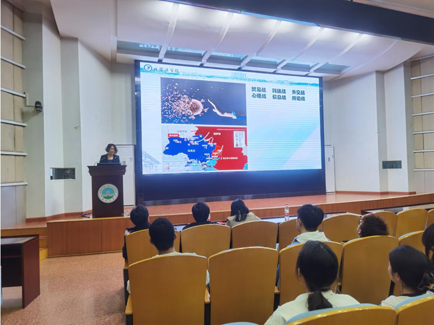 谈宏慧教授首先从“世界变局与我们”入题,介绍了外语教育政策的价值取向、外语人才使命的历史变迁、全球化3.0时代的外语人才使命与挑战;然后从外语专业、外语行业的发展谈到当今外语人才应具备的素质和能力;接着分享了学院专业特色和阳光文化,通过优秀校友事迹简介激励同学们要以语言运用能力为基础,以思辨能力、学习能力、跨文化能力和信息处理能力为重点,以研究能力为辅助,强化多维能力,实现从单一的语言技能训练到话语方式转换的提升。讲座最后,还就同学们提出的问题进行了解答与交流。