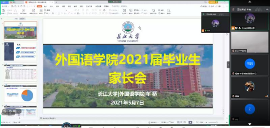 会上,辅导员车桥就学生的总体现状,各专业同学的考研、出国、签约、实习和找工作等基本情况及面临的一些共同问题进行了简要介绍,让家长们对学院目前围绕毕业生所开展的系列工作有一定的了解。还就学生的择业心态,临近毕业时,家长如何提醒学生平衡实习工作和毕业论文的关系,如何共同关注学生的心理情绪的变化等方面进行了交流,并详细介绍了学院自2020年9月起为全院学生提供的系列招聘信息和就业服务,希望家长们能在今后督促学生们增强就业的主动性。