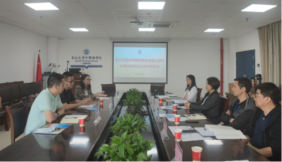 武汉译国译民翻译服务有限公司总经理吴强简要介绍了公司的主要业务情况,翻译项目总监刘静和商务渠道总监傅立松介绍了公司各类校企合作项目及案例,展示了译国译民在人才引进与培养、校企合作与交流方面的成果。