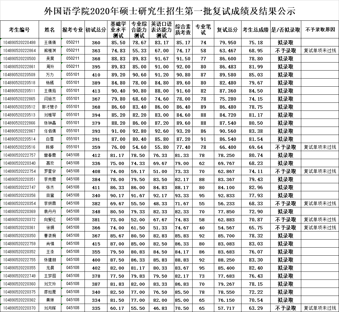 【复试结果公示】新葡萄官网AMG2020年硕士研究生招生第一批复试成绩及结果公示
