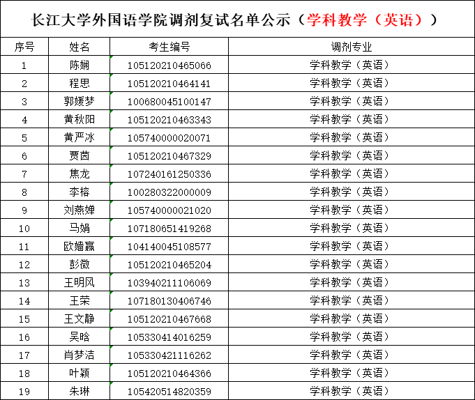 【调剂复试名单公示】新葡萄官网AMG调剂复试名单公示(学科教学(英语))