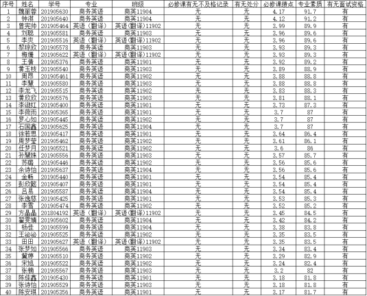 经学生本人申请、学院资格审核现将我院2019级商务英语专业“卓越国际人才”实验班获得面试资格学生名单予以公示