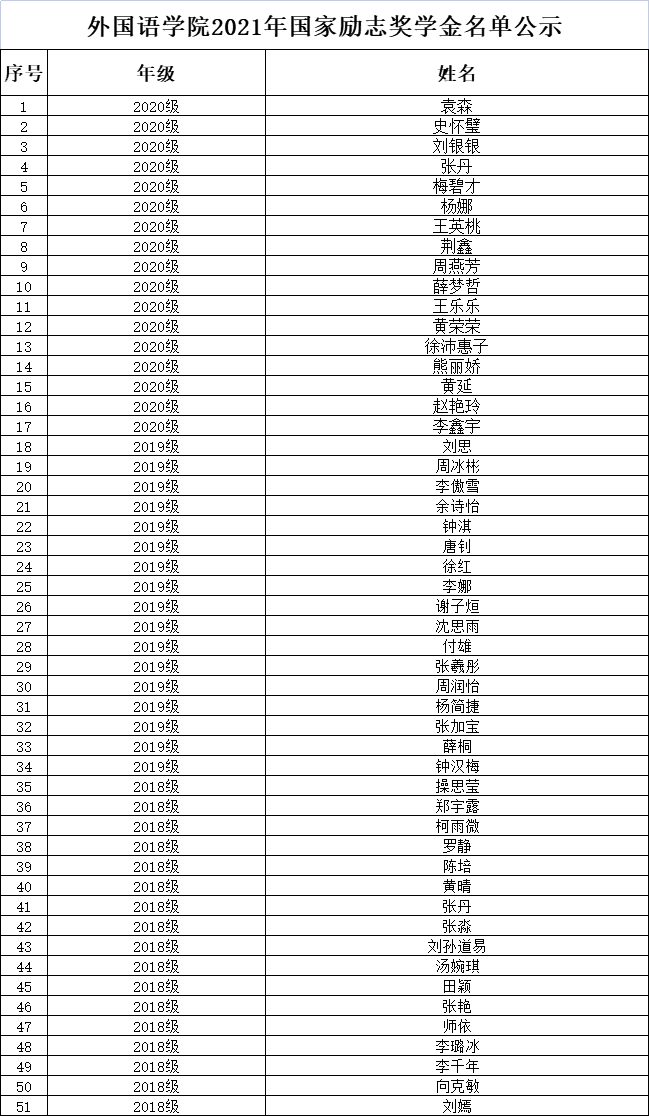 根据《财政部 教育厅等五部门印发<学生资助资金管理办法>》(财科教[2019]19号)、《财政部 教育部 中国人民银行 银监会关于进一步落实高等教育学生资助政策的通知》(财科教[2017]21号)及《省教育厅 省财政厅等六部门联合印发<湖北省家庭经济困难学生认定工作实施办法>》(鄂教助[2020]1号)的精神,结合我院实际情况,经学生本人申请、班级评议、学院奖助学金评审小组审核、学院党政联席会通过,现将新葡萄官网AMG2021年袁森等51名获得国家励志奖学金、纪嘉祺等367同学获得国家助学金的初评名单公示。