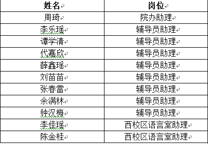 根据《新葡萄官网AMG学生勤工助学管理办法》(长大校发﹝2017﹞187号)及《新葡萄官网AMG勤工助学管理办法》,经学生本人申请,学院审核,决定拟聘任以下11名学生为2023年春季学期勤工助学岗工作人员,现予以公示: