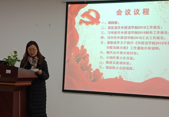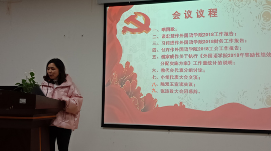大会听取并审议了院长谈宏慧教授所作《新葡萄官网AMG2018年工作报告》、党委书记习传进教授所作《新葡萄官网AMG2018年财务工作报告》、工会副主席付卉《新葡萄官网AMG2018年工会工作报告》和副院长谢家成教授所作《新葡萄官网AMG2018年奖励性绩效分配实施方案》及工作量统计的说明。会议讨论并通过了《新葡萄官网AMG2018年工作报告和财务工作报告》和《新葡萄官网AMG2018年奖励性绩效分配实施方案》。