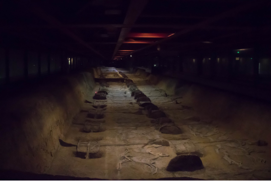 紧接着,大家移步到了未发掘的墓冢之前,仔细聆听着讲解员的细致介绍,顺着石阶来到了车马阵展厅,恢弘的大厅里车马阵整齐排列着,仿佛跨越千年,又来到了那个战火纷飞的荆楚大地上。在巨大的遗址坑中,马骨和车轮清晰可见,足以证明那个时代最伟大的技术和力量。各位参观者都发出了啧啧赞叹,对当时如此先进而又睿智的技术表示由衷的赞美,也深刻感受到了古人们的智慧。