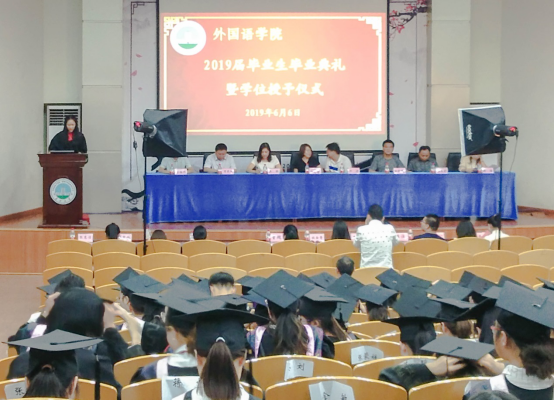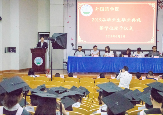 (摄/郑甜 文/洪展程 罗静)6月6日下午2点,在大四学子即将奔赴新的起点之际,我院在12教405召开了2019届毕业生毕业典礼及学士学位授予仪式。我院党委副书记张涛老师主持这次为2名研究生毕业生和121名本科毕业生隆重举行的典礼。院长谈宏慧教授、副院长谢家成教授、副院长彭沂副教授及众多硕士生导师和教师代表出席了本次典礼。