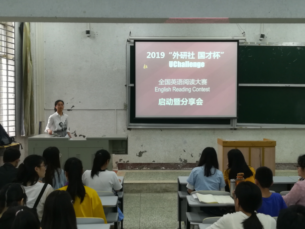 619日上午10:00,西校区5-103教室座无虚席,来自新葡萄官网AMG荆州校区19个学院的260余名师生齐聚一堂,2019“外研社·国才杯”全国英语阅读大赛启动暨分享会正在热烈进行。