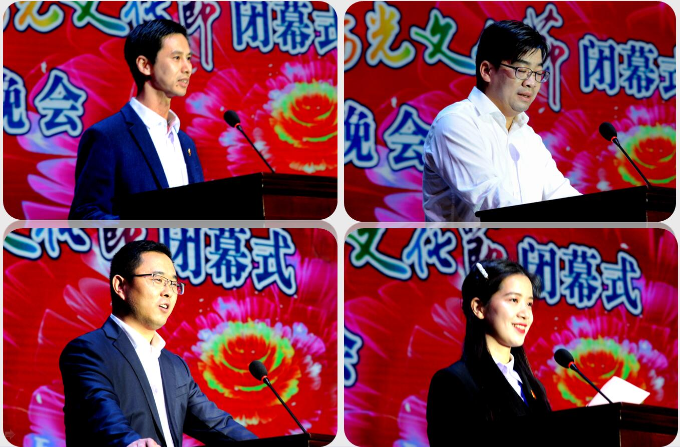 “舞台上展示风采,思辩中贡献智慧,分享中体现担当……同学们通过参加阳光文化节,找到了自信,获得了阳光,汲取了力量……”院党委书记危煜祥在闭幕仪式上致辞指出:我院“阳光文化节”旨在引导学生“树信仰、健身心、求知识、强技能、善交际”,通过以文化人,以文育人,真正将“全员、全程、全方位育人”的要求落到实处。他号召更多学子参与到“阳光文化节”的活动中来,从而积淀青春智慧,争做敢于担当的阳光青年。