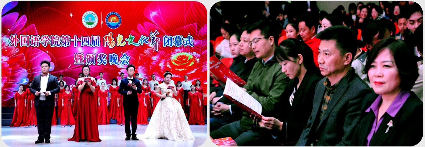 (文/谭晧洋 韩思洁 摄/曾尉 吴一楠 袁缘 徐睿 田丰 张芷艺)传播阳光文化,传承外院精品,历时2个月的新葡萄官网AMG第十四届“阳光文化节”圆满谢幕。11月16日晚,“阳光文化节”闭幕式暨颁奖晚会在东校区大礼堂隆重举行。校党委组织部常务副部长李应军,校党委研究生工作部副部长毛德波,校团委副书记张娟、秦良斌,教务处副处长郑健、游晓莉等学校职能部门领导,深圳市优教优学教育科技发展有限公司创始人元海斌以及学院领导出席闭幕式暨颁奖晚会,与我院师生共同感受了本届阳光文化节的耀眼时刻。