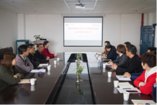 在正式签约前,我院领导先对我院的师生情况,师资力量以及翻译方面的综合实力进行了详细介绍。并表明我院进行此次合作旨在提高我院人才培养能力,提高学生培养质量。馆方负责人也对博物馆的现状做相关介绍。并表示荆州博物馆具有很大的影响力,其藏品具有鲜明的楚文化特点,拥有很大的观众基础。双方负责人均表示,博物馆有一流文物,外院有一流师资一流学子。馆校合作,强强联手将会在不久的未来双创共赢。