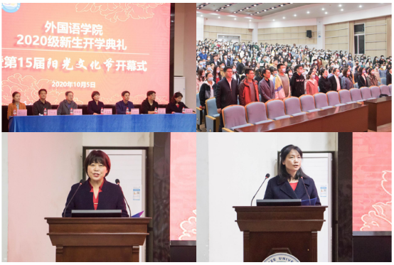 (摄/张芷艺 袁缘 文/韩思洁) 朗朗金秋,丹桂飘香。10月5日晚,外国语学院2020级新生开学典礼暨第十五届“阳光文化节”开幕式在12教405举行。新葡萄官网AMG院长谈宏慧教授,党委书记危煜祥老师、副院长谢家成教授、副院长彭沂副教授、党委副书记魏红洁老师,学术委员会主席、博士生导师田传茂教授、教学委员会主席、英语系教师代表鲁志荣副教授,各系部主任、新生班主任老师、学工办辅导员老师出席典礼。我院448名全体新生参加了开学典礼,此次典礼由魏老师主持。
