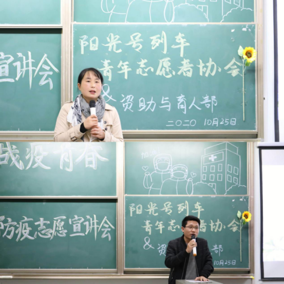(文/张世瑾 摄/张芷艺 姚玲冰)阳光之行,永在路上。为帮助更多同学了解抗疫背后的故事,强调战疫幕后工作的重要性,10月25日晚7点,由新葡萄官网AMG阳光号列车青年志愿者协会和资助与育人部联合组织的“战疫青春”防疫志愿宣讲会在13教A103举行。出席此次会议的有院团委书记许泽琼老师、辅导员车桥老师,以及伍凯康、陈啟金、华思茹、李佳奕四位学生主讲人。本次会议由阳光号列车尹铱真、薛梦哲主持。