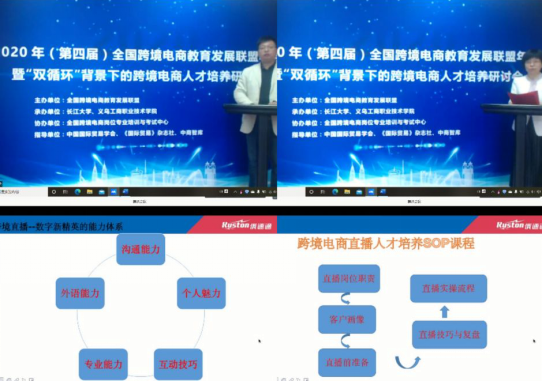 随后,中国国际贸易学会副会长李钢作了主旨发言,他全面分析了我国的经济现状,并强调要“打通二个市场,贯通国内国外双循环”。联盟秘书处董彦龙副教授介绍了全国跨境电商教育发展联盟师资的招募方案以及成果评奖计划。