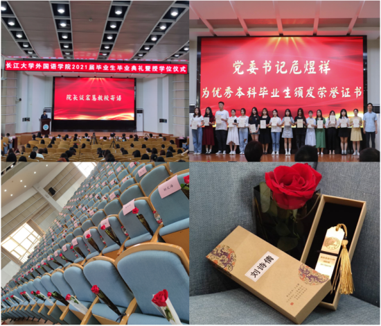 据悉,本次毕业典礼新葡萄官网AMG为学生精心准备,让毕业生感到“心到”、“情到”、“礼到”,为368名毕业生每人赠送一朵玫瑰,定制了毕业纪念品——黄铜书签,书签上刻有校徽以及每一位毕业生的班级、姓名、学号。英语专业2021届本科毕业生李梓雯收到毕业纪念品后表示,“拿到书签的时候真的很惊喜!书签造型简洁,却深藏着耐人寻味的意义;镌刻的校徽和班级、姓名、学号,映射着我们和学校的关联,充满学校对每一位毕业生的期愿。看到书签,能感到自己是时刻被挂念的,被期待的,也让我们在未来的路上更有底气,更有力量。”