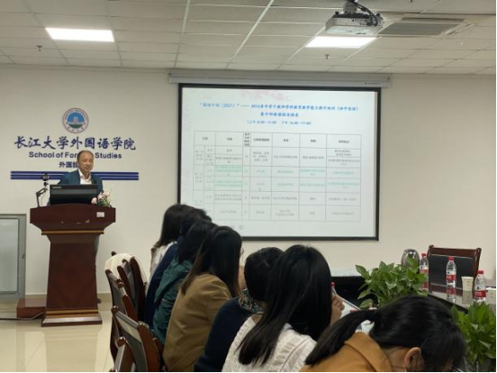 开班仪式上,谢家成教授代表学院表达了对学员们的欢迎和期待。学术班主任吴亚华老师解读了本次国培研修的专题设计理念,即遵循“理念引领(专家讲座和文献研习)+学员体验(工作坊团队设计)+ 分享展示”研训模式,并力争所有研训专题围绕核心主题——英语学科核心素养落地,延长体验链条,依托“文本解读、单元整体解读与设计、教学评一体化、资源获取与整合、听说课教学设计、读写课教学设计”等众多子专题,形成一体化的长链条专题群,以增强学员研修的收获感。本次国培研修将邀请北京教育学院张金秀教授、重庆市沙坪坝教师进修学院冯丽教授;湖北省英语教研员扈华唯、罗之慧,武汉市英语教研员王劲松等专家;武汉水果湖二中吴桂华、沙市实验中学邱煜等一线名师为国培学员开展引领和指导。院内指导团队也开展了集体备课,深入分析初中英语教材,做好了充分准备。