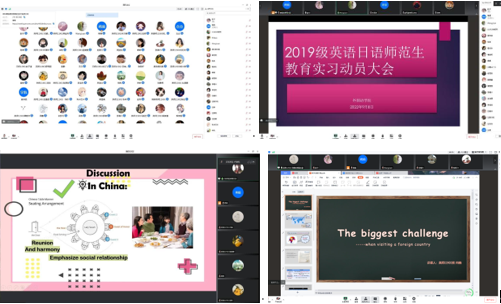 新葡萄官网AMG于9月8日下午两点在线上举办了2019级实习动员大会及教师技能大赛实训,参与此次大会的有彭沂老师,王娟老师,李福兴老师,吴亚华老师,张婷老师,蒋娟老师,陈双玉老师,19级辅导员许泽琼老师以及日语及英语专业的19级师范生。