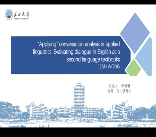紧接着,张婧琳同学为大家做了汇报,她的主题是:“Applying conversation analysis in applied linguistics:Evaluating dialogue in English as a second language textbooks”。她首先从引言入手,聚焦于研究背景,明确地指出了研究问题。接着,她对“语篇分析”和“会话分析”理论进行了详细阐释。然后,她介绍了相关研究方法,并着重对研究结果展开了分析、讨论。此外,她还指出了该篇文献存在的不足之处,并提出了个人见解。最后,她结合其他研究对课堂会话进行了思考,发现课堂会话实施过程中仍存在诸如话语量过多、话语结构模式单一等问题。