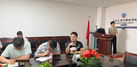 公外教学部主任徐芳介绍了公外教学部新编写的《大学英语四级精讲精练》教材,本教材旨在帮助学生快速提高英语四级考试能力。负责教材各部分编写任务的组长介绍了写作、听力、阅读和翻译在四级备考分项教学中运用时须注意的事项。公外教学部副主任罗博分享了四级复习周计划,介绍了本学期四级冲刺阶段工作的启动时间和全校大一学生的四级模拟考试初步安排,提醒老师们把握好教学进度,确保学生们有足够的时间进行复习和巩固。大家还共同探讨了本学期四级备考工作的相关细节。