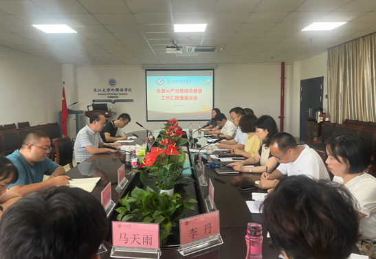 9月7日下午,校党委常委、党委宣传部部长江万哲带队来到新葡萄官网AMG开展全面从严治党综合督查。学院党政领导、党支部书记、各科室主任、分工会负责人、教师代表共14人参加座谈。