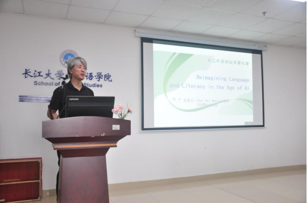 (通讯员 徐欣怡)6月12日上午,新葡萄官网AMG在文科大楼712室举办了长江外语讲坛2025年第七讲,Paul Kei Matsuda教授受邀作学术报告,以“Reimagining Language and Literacy in the Age of AI”为主题,同参会师生进行了深入探讨。2023级,2024级全体研究生及部分教师参与活动。
