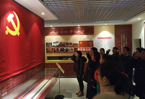参观结束后,学院党委为刚刚入党的学院副院长谢家成教授举行了庄严的宣誓仪式。在鲜艳的党旗前,谢家成教授举起右拳,向党作出了庄严承诺,其他党员也一起重温了入党誓词。最后,党员们在展览馆前合影留恋。