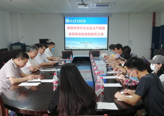 5月28日下午,以校党委常委、副校长张大平为组长,校工会常务副主席王勇、校团委副书记秦良斌、学校办公室科长陆峰为组员的校党委全面从严治党第七检查组莅临新葡萄官网AMG,对学院2019年以来全面从严治党工作进行了检查指导。