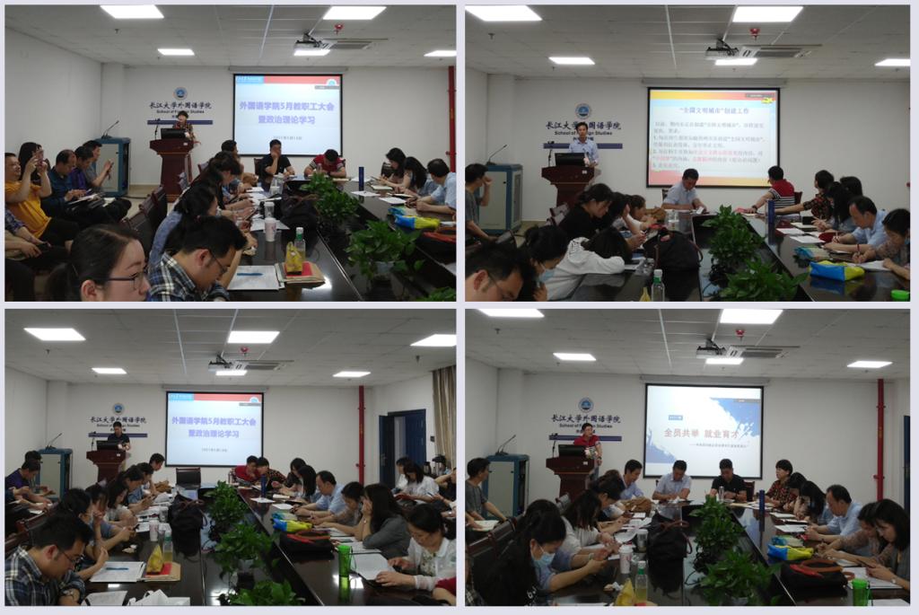 513日下午,学院在文科楼712会议室召开全院教职工大会并开展政治理论集中学习。会议由院长谈宏慧主持。