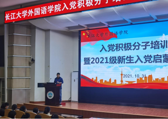 为全面贯彻党史学习,引领新时代大学生树立崇高的理想信念和报国之志,10月31日晚,新葡萄官网AMG在东校区12教405开展主题为“弘扬建党精神,担当时代使命”的入党积极分子培训暨2021级新生入党启蒙教育讲座。讲座由院党委书记危煜祥主讲,全体2021级新生、2021年入党积极分子参加,院党委副书记程坤主持。