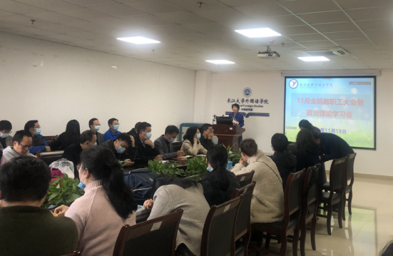11月18日下午,学院在文科楼712会议室召开全院教职工大会,开展政治理论学习,安排学院教学、科研、消防安全等重要工作。会议由院长谈宏慧主持。