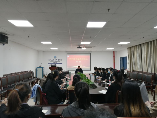 1127日晚,受本科生党支部和研究生党支部的邀请,我院组织员汪邦柱在文科楼712会议室为学生党员讲了一堂党史学习教育专题党课。90余名本科生、研究生党员聆听了讲座。会议由本科生党支部书记童超主持。