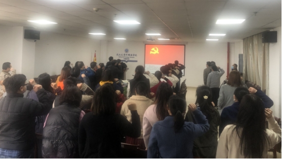 会上,在院党委副书记程坤的领誓下,全体与会党员重温了入党誓词。公外教师党支部罗博、英语教师党支部樊辉、日语和行政教师党支部常芬等3名党员领诵了《中国共产党章程》第三章。