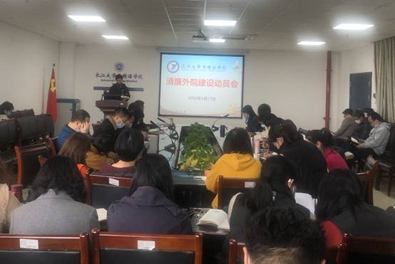 为深入贯彻落实学校纪委推进清廉长大建设的“五三八四”行动计划,新葡萄官网AMG第一时间召开党委会,专题研究清廉学院建设,并制定了“清廉外院”建设的十条举措。3月17日下午,新葡萄官网AMG“清廉外院”建设动员会在文科楼712会议室召开,全院教职工参加了动员会。