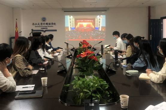 在文科楼712会议室,学院党委书记危煜祥、副书记程坤以及师生党员代表共15人一起集中收看。收看完习近平总书记的报告后,大家围绕报告内容开展了热烈的交流。