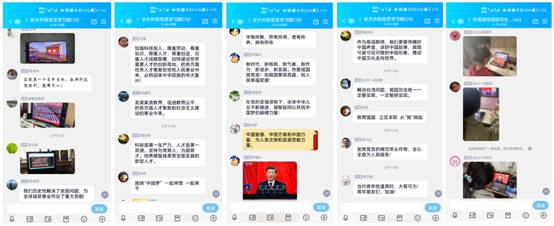其他师生通过电视、手机等方式进行收看。党员同志们一边聆听,一边在党员学习群里畅谈体会。