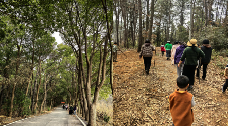 离开梅园后,老师们来到了静谧的八岭山林场,开启一场充满趣味的探险之旅。林场中树木郁郁葱葱,阳光透过枝叶的缝隙洒下,形成一片片金色的光斑。一路上,老师们呼吸着清新的空气,感受着大自然的生机与活力。