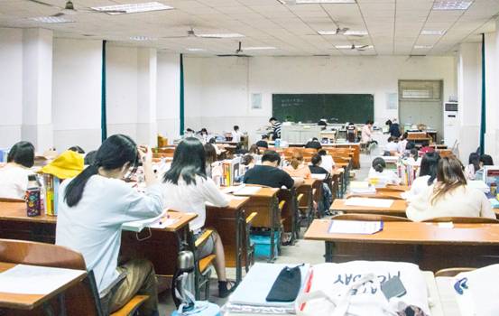 一个良好的学习环境是支持学生考研成功的不可缺少的因素之一,而考研自习室作为学子们考研备战的场所,很大程度上影响着学生们是否有机会成为突破百万考研大军的黑马。临近暑假但自习室中仍有许多学生在自习,并且自习室卫生情况也较好,检查的同学们只发现了几张传单和废纸,同时尽量放低声音避免打扰到埋头复习的同学们。检查完后,童老师在自习室里再次仔细地检查了卫生情况,对本次检查活动进行收尾。