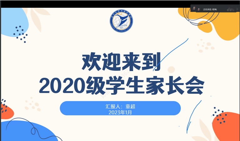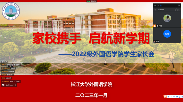 2022级辅导员何稳汇报了2022级新生在学习、生活上的情况以及春季学期的计划安排,并就家校携手共同推进学生成长这一目标进行了在线交流。