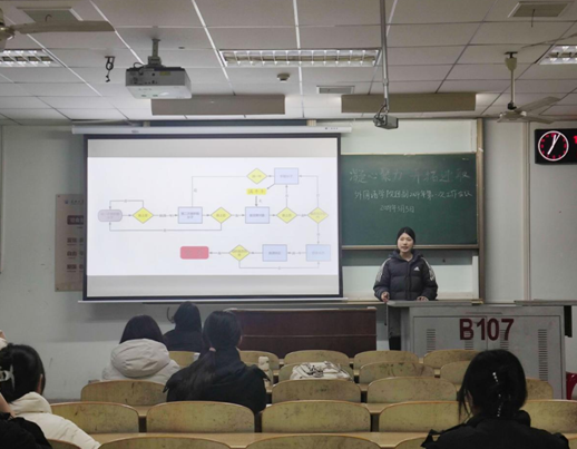 在工作讲解和问题答疑之后,何稳老师围绕本次会议主题“凝心聚力 开拓创新”提出团支部建设和团的干部建设相关要求,团的干部要有坚定的理想信念和高度的责任感与服务意识,以身作则,服务班级服务同学。此外,她还就如何提高团副的工作效能提出了具体建议。