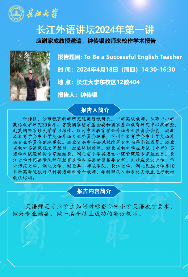 长江外语讲坛2024年第一讲:To be a successful English teacher