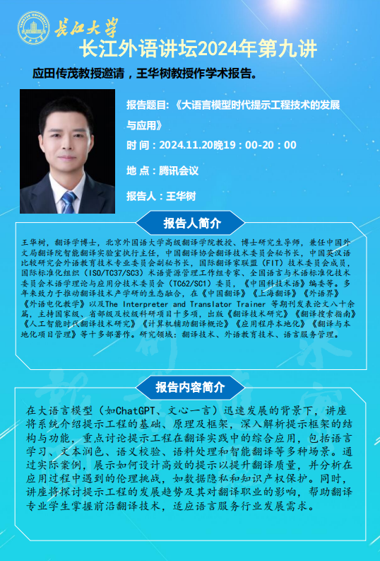 长江外语讲坛2024年第九讲:大语言模型时代提示工程技术的发展与应用