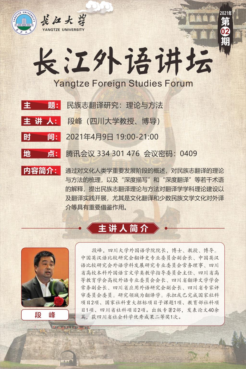 长江外语讲坛(2021年第二讲):民族志翻译研究的理论与方法