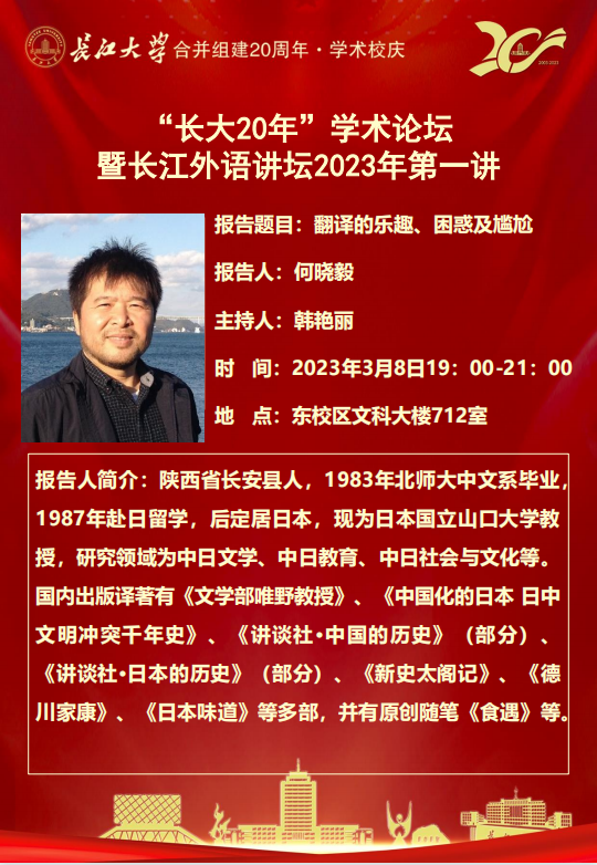 “长大20年”学术论坛暨长江外语讲坛2023年第一讲 翻译的乐趣、困惑及尴尬