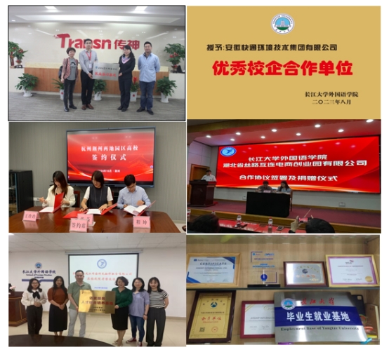【升学就业】:商务英语专业与职业契合度高,就业路径广;专业服务聚焦江汉平原三农及制造业、能源产业,服务地方经济,区域优势突出,注重学生实践能力培养,基于体验学习的校内外实践协同育人有保障。(1)创新创业强实操。学生参加大创项目26项,其中国家级1项,省级4项;(2)学科竞赛促能力。获“外研社杯”理解当代中国全国大学生外语能力大赛英语演讲赛及全国大学生电子商务三创赛等国家级及省级学科竞赛奖项43项,获国家级荣誉称号6人次。(3)职业认证促发展。近三年本科生116人获得国际人才考试(ETIC)资格认证,149人获得阿里巴巴《国际站操盘官》和《国际商务师》等职业资格证书。2019级起,开设商务英语卓越人才实验班,20和21级卓越人才实验班,专业四级一次性通过率98%;22级实验班专四一次性通过率100%。19级实验班考研率24%,就业率达100%;20级实验班考研率33% ,一次性就业率95%;24级卓越班嵌入“涉外法治”微专业,提升学生跨界学习能力和竞争力。