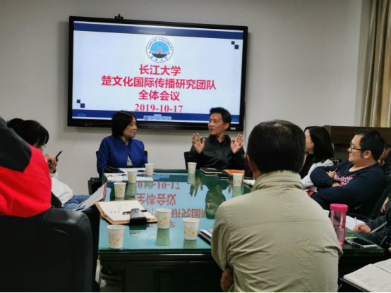 10月17日下午三点,新葡萄官网AMG“双一流”建设科研团队“楚文化国际传播研究团队”2019-2020学年第一学期第一次全体会议在文科大楼814如期举行。本次会议由田传茂教授主持,共包括三个主体环节:田教授宣布会议开始并做了有关楚文化国际传播研究的相关发言;谈宏慧院长和谢家成副院长分别讲话;全体参会教师和研究生进行了学术探讨。