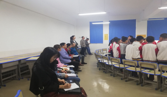 2019年10月10日下午,新葡萄官网AMG基础教育协同创新团队的谢家成,陈凯华,吴亚华三位老师,以及参与“中小学英语戏剧进课程模式研究与运用实践”的创新创业项目小组成员及部分研究生一起前往荆州开发区实验中学观摩了小学英语戏剧教学,并开展联合教研活动。