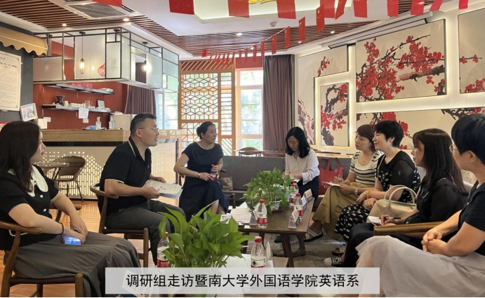 6月12日下午,调研组走访暨南大学新葡萄官网AMG,该院英语系主任朱红强博士以及杨才英、林维燕、沈佳、段凯歌四位老师出席座谈会,双方就人才培养目标、课程设置、大学生创新创业项目开发及学生就业等议题展开了富有成果的探讨。
