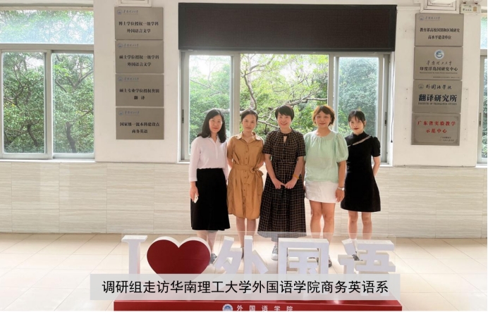 6月9日下午,调研组访问华南理工大学,受到商务英语系主任苏娉教授的热情接待。华南理工大学商务英语专业为国家级一流本科专业建设点,在商务英语领域有较高的声誉与影响力。苏教授详细介绍了该校商务英语专业的课程设置和教学安排,解答了调研组关于学生实习实践等方面的疑惑。