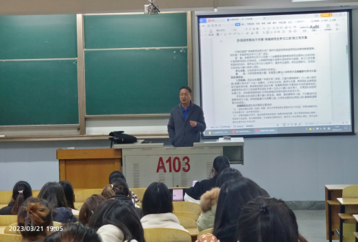 活动伊始,学院党委副书记程坤表达了对参与该活动学生的期盼与要求。接着,本次活动负责人、学院副院长谢家成教授主讲了系列活动的第一个主题“英语学科核心素养下的单元整体解读与授课文本解读”。